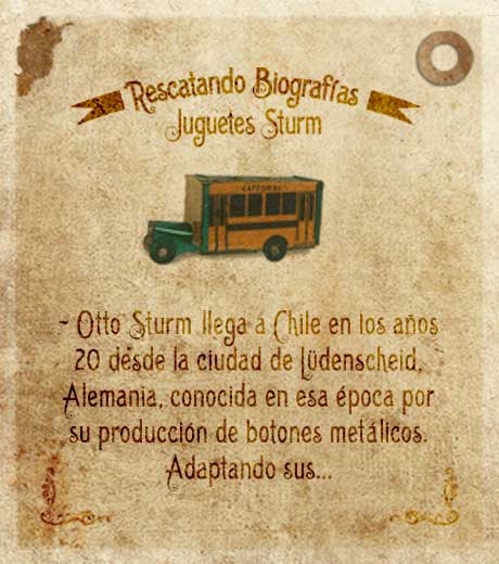 - Esta sección biográfica, que contiene algunos nombres de los muchos fabricantes de juguetes que dieron origen a la próspera industria juguetera chilena, es para su libre conocimiento y difusión gracias a la colaboración del Museo del Juguete Chileno, a través de su director, Sr. Juan Antonio Santis, Escultor y Museólogo. -